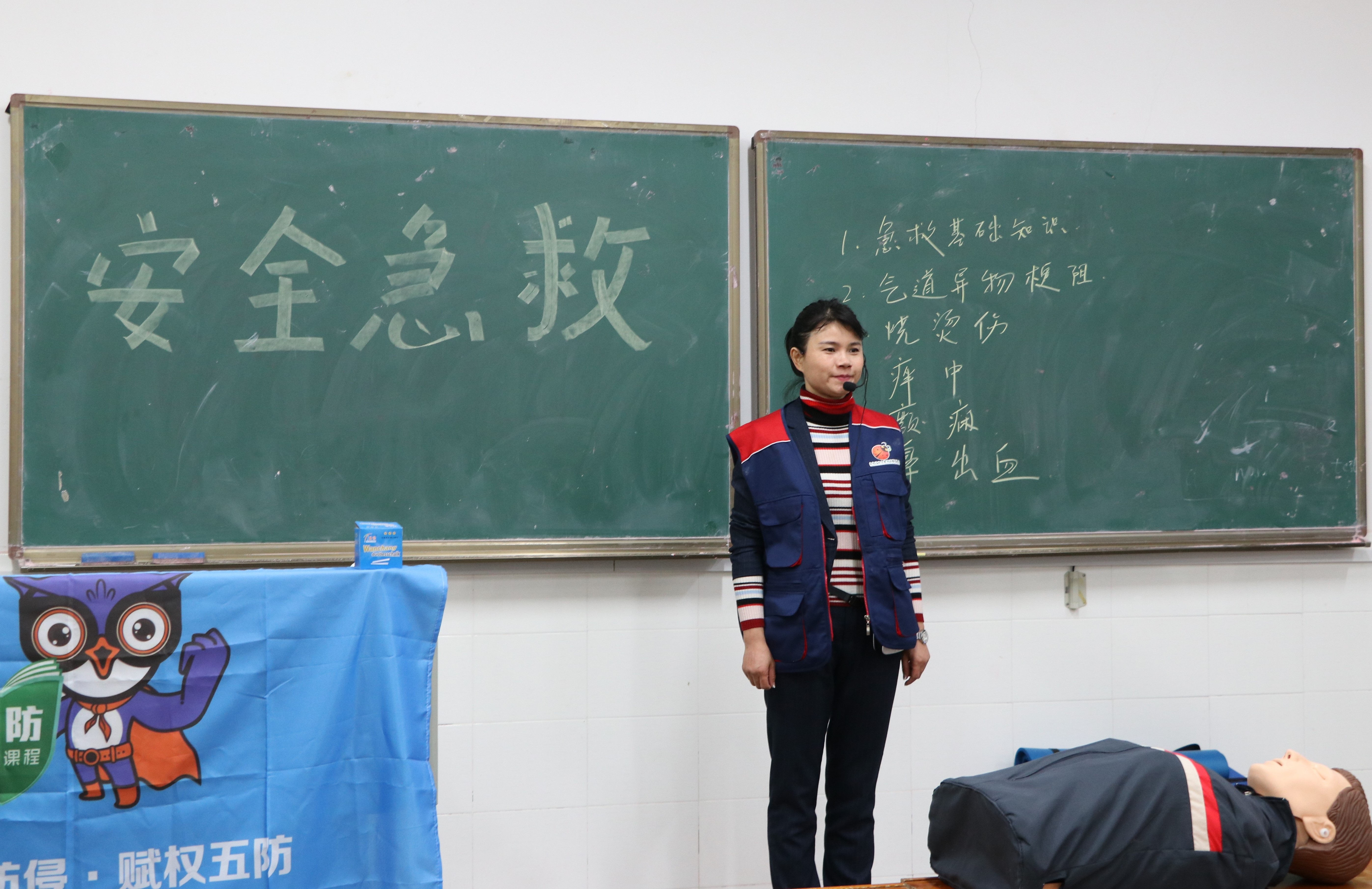 讲堂伊始,邵霞解释了急救和救援的不同,强调现场急救是应用急救知识和简单的急救技术进行抢救工作,急救的首要原则是安全急救、保己救人。她说“实施现场急救时要评估现场环境,确保自己的人身安全,必要时使用手套、呼吸面罩等防护措施进行施救。”接着,邵霞老师给同学们科普了急救基础知识,然后讲述了遇到气道异物梗阻情况的两种解决办法:当气道异物梗阻刚发生、病人还有意识配合时,在患者背部两肩胛骨之间用掌根进行叩击;病人单手握拳放于肚脐上两指的位置,另一只手拖住拳头由下往上冲击腹部,从而把气道里的异物冲出。随后,他又通过多个例子分别阐述了烧烫伤,脑梗脑溢血、癫痫等状况发生时的处理方法,并指出了部分民间偏方的错误。