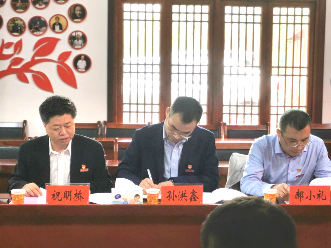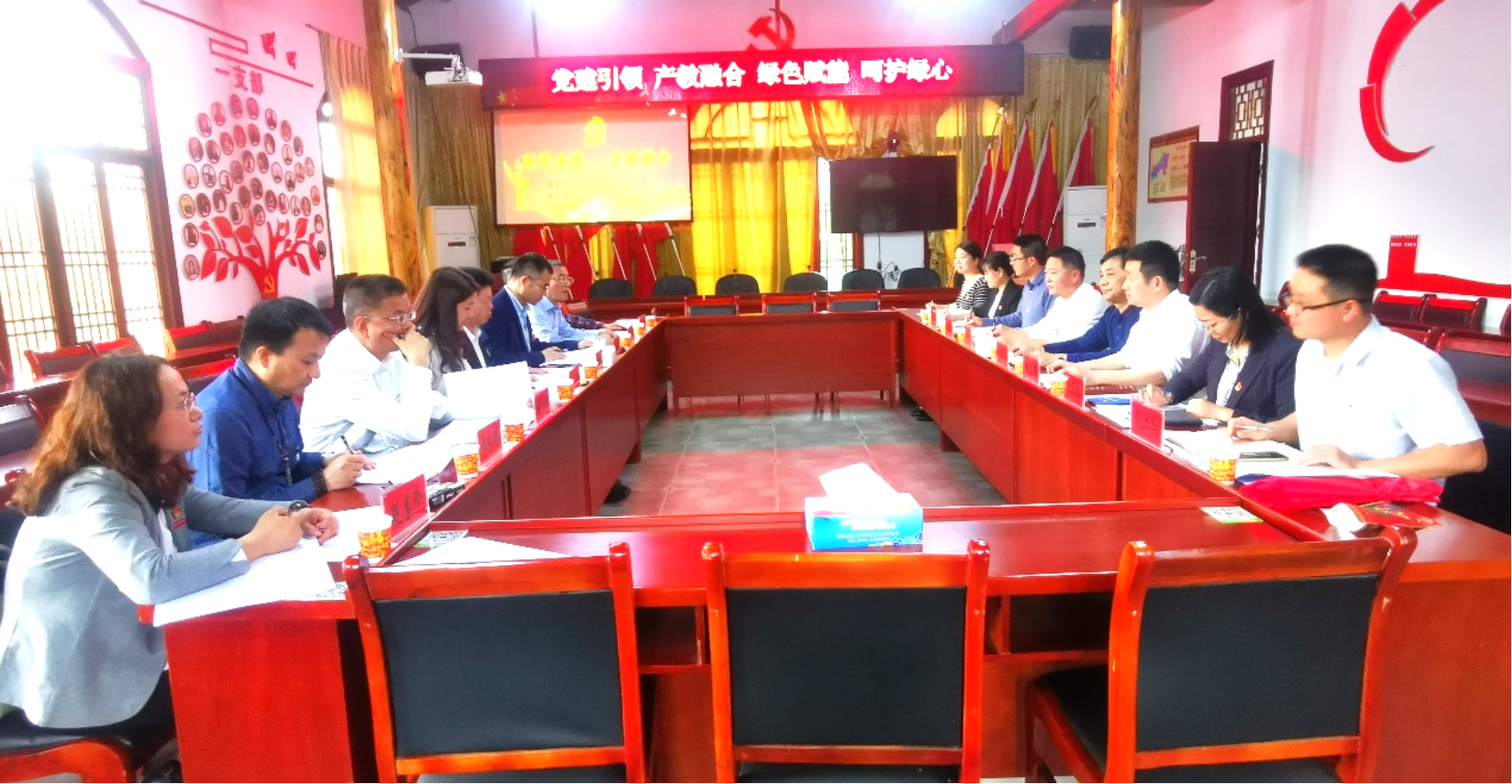 联合学习研讨会在昭山镇七星村村委会议室召开,湖南湘潭岳塘经开区副处长李俊杰出席会议,湖南健康产业集团有限公司总经理叶三明主持联学,湖南健康产业集团党支部副书记兼财务总监彭素红、副总经理廖剑元与马爱文、党支部宣传委员傅石根、开发部部长熊江华、党支部组织委员文玲等参与会议。