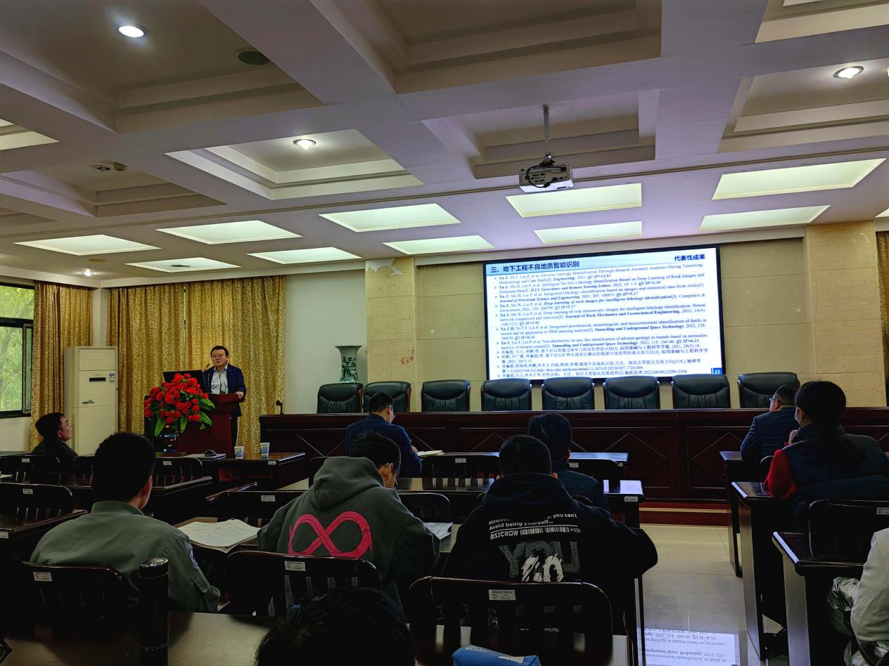 许振浩教授聚焦国内重大工程问题,以川藏铁路等隧道遭遇地质灾害造成为背景,针对传统隧道内地质分析方法存在的缺陷引入报告主题。随后,许振浩教授讲解了基于图像识别与光谱分析的岩性与不良地质智能识别方法,向师生们讲述了灾变防控的注浆数值模拟分析的创新算法,并通过新疆某引水隧洞等工程应用实例展现了经济社会效益。最后,许振浩教授将其取得的最新学术成果分享给大家。这些研究新观点,为价值共创领域的相关研究提供了指引和导向。