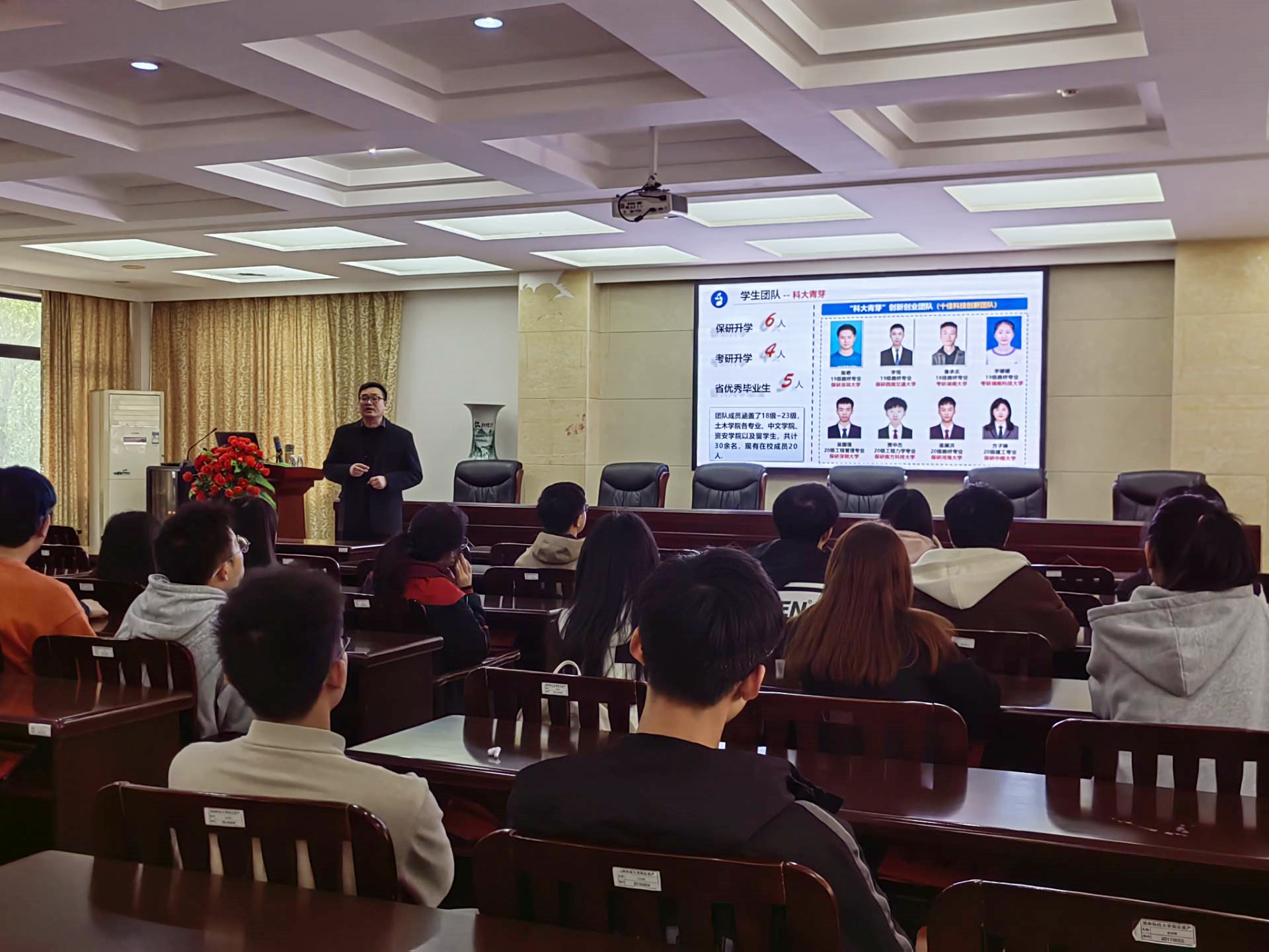 赵超博士首先向同学们介绍了自己作为“科大青芽”团队指导教师的基本情况和 “科大青芽”团队的学生状况。他重点强调了专业学习和知识积累的重要意义,并指出要具备开阔的视野格局、“实事求是”的科学态度、执着的探索精神和创新的改革精神,最重要的是吃苦耐劳、永不服输的毅力。