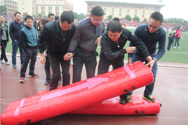 在激烈的比赛进行时,土木学院党委副书记易贵元和各个年级的辅导员、班主任亲自来到赛场边,为土木健儿加油鼓劲。同学们见到有老师来为自己加油,变得更加自信了,在比赛中发挥出了最高水平。