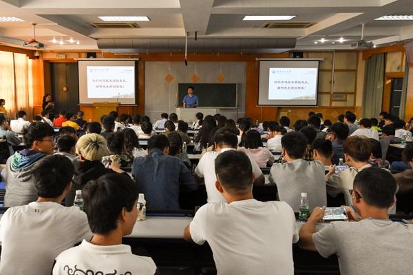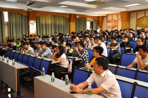在汪建群对两位报告人做了简单的介绍后,谢明的原班主任、颜跃的原辅导员皇晓东对他们的介绍进行了补充,并鼓励土木学子需以优秀学长为榜样,他说道:“在大学期间,我曾是两位报告人的老师,对他们有较为深入的了解,他们在大学期间已是非常优秀,希望大家可以向他们多多学习,从他们身上汲取养分。”紧接着,颜跃、谢明分别为同学们做报告。